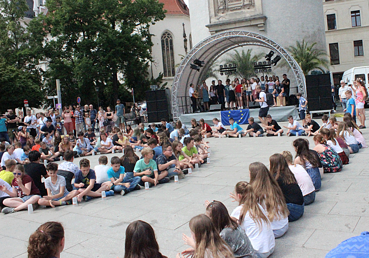 En junio de 2015, la empresa de servicios culturales decidió no acoger más la “Fete de la Musique”. Aquí los clubes nos pidieron una vez más que organicáramos en un plazo de cuatro semanas este evento, que también es importante para la ciudad cultural de Görlitz. Utilizamos el escenario del teatro frente al Kaisertrutz, que se instaló el jueves para la pausa artística del punto de encuentro messiaen eV y luego el viernes y el sábado se convirtió en el escenario para bandas jóvenes y artistas de Alemania y Polonia como parte del " Fiesta de la Música". Un año después se nos ocurrió un nuevo concepto para la "Fete de la Musique". Ahora se llamaba "Crossover en el Untermarkt". Las bandas bajo los soportales del "Braunen Hirsch" se alternaban con cantantes y compositores bajo los soportales del Museo de Silesia en diagonal cada 3/4 horas.